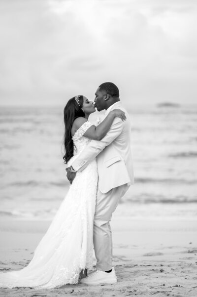 I make creative decision based on setting and mood. My favorite opportunities for black and white are the photos where the bride and groom have raw emotions and during a ceremony in dark churches.