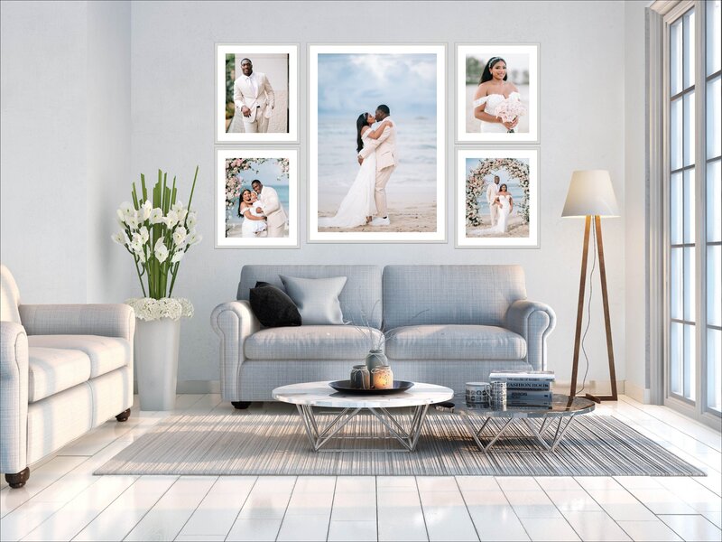 our beautiful wall art pieces of your favorite wedding day photos. These high quality professionally printed & framed pieces come in a